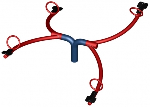 - Aus verzinktem Stahlrohr, rot und blau pulverbeschichtet